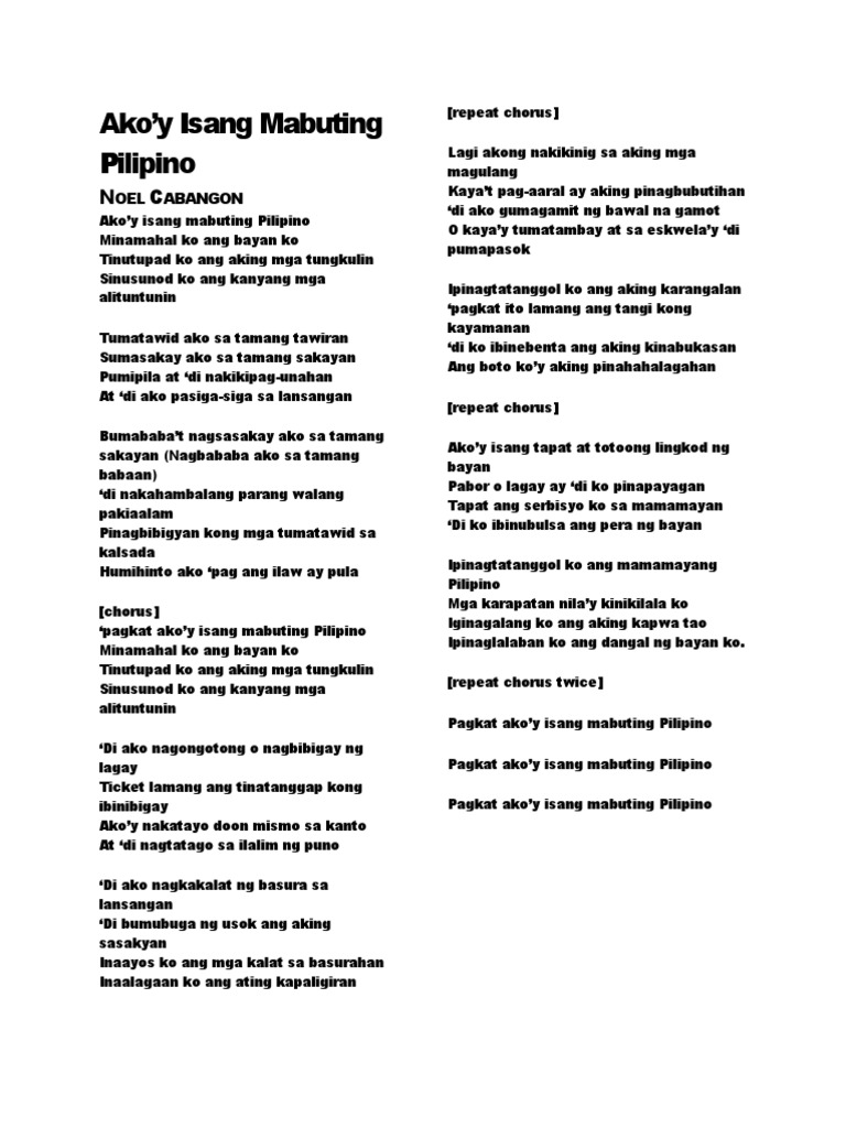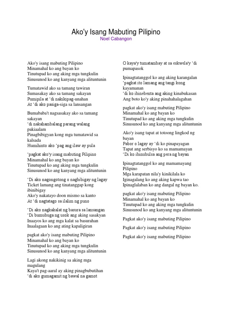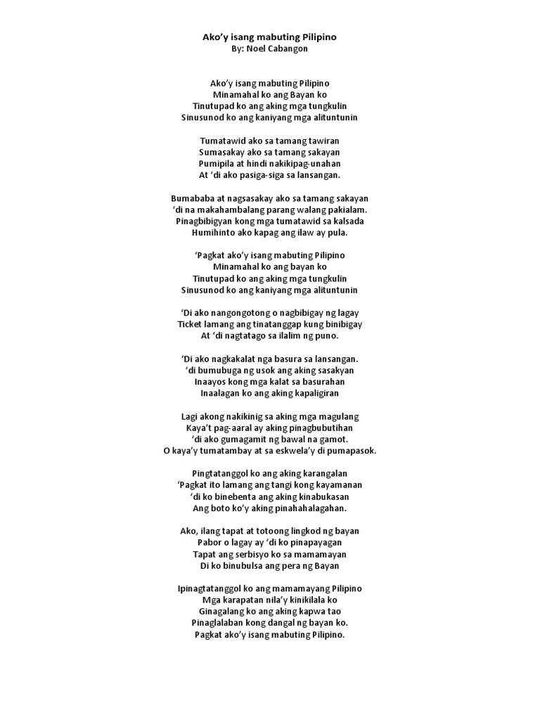 Ako Mabuting Pilipino Docx Ako Y Isang Mabuting Pilipino Noel Cabangon Ako Y Isang Mabuting Pilipino Minamahal Ko Ang Bayan Ko Tinutupad Ko Ang Aking Course Hero